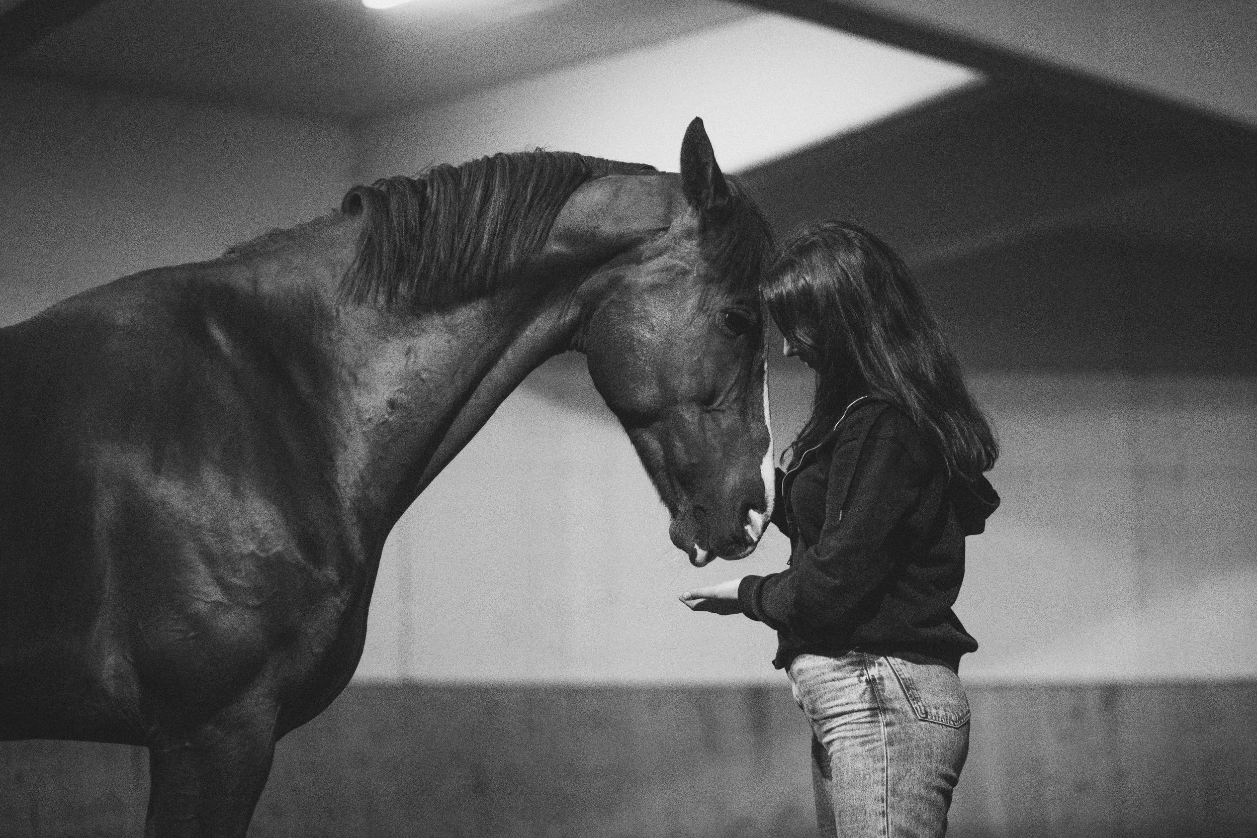 — Ein Pferd ist der beste Spiegel, den man als Mensch haben kann, wenn man nur bereit ist, hineinzuschauen. — Besondere Momente in schwarz-weiß